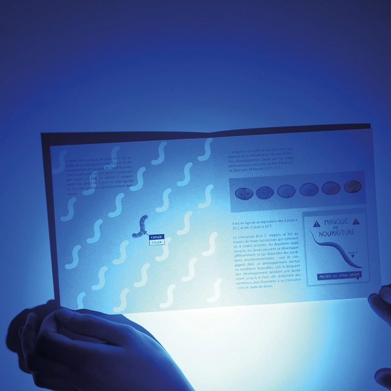 Ce livre a été conçu et réalisé à partir des recherches et de l’expertise de Sophie Jarriault dans le cadre du projet Jeux de papier de l’atelier de Didactique visuelle en partenariat avec la Société Française de Biologie du Développement (SFBD).