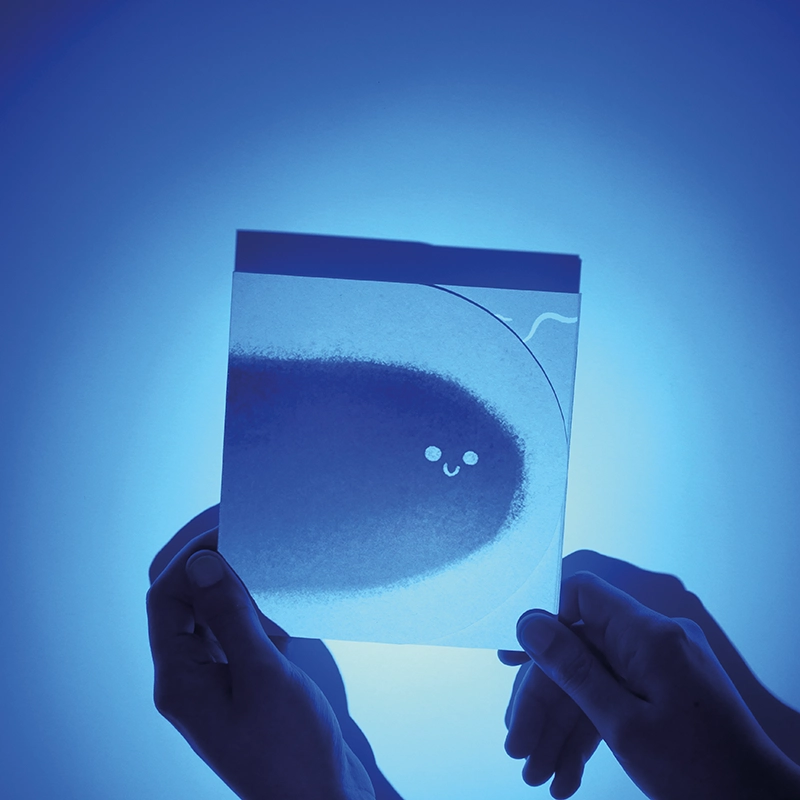 [Livre Leporello, 15cm x 15cm, impressions jet d’encre, vernis sérigraphie UV, papiers 250gr/m2]
