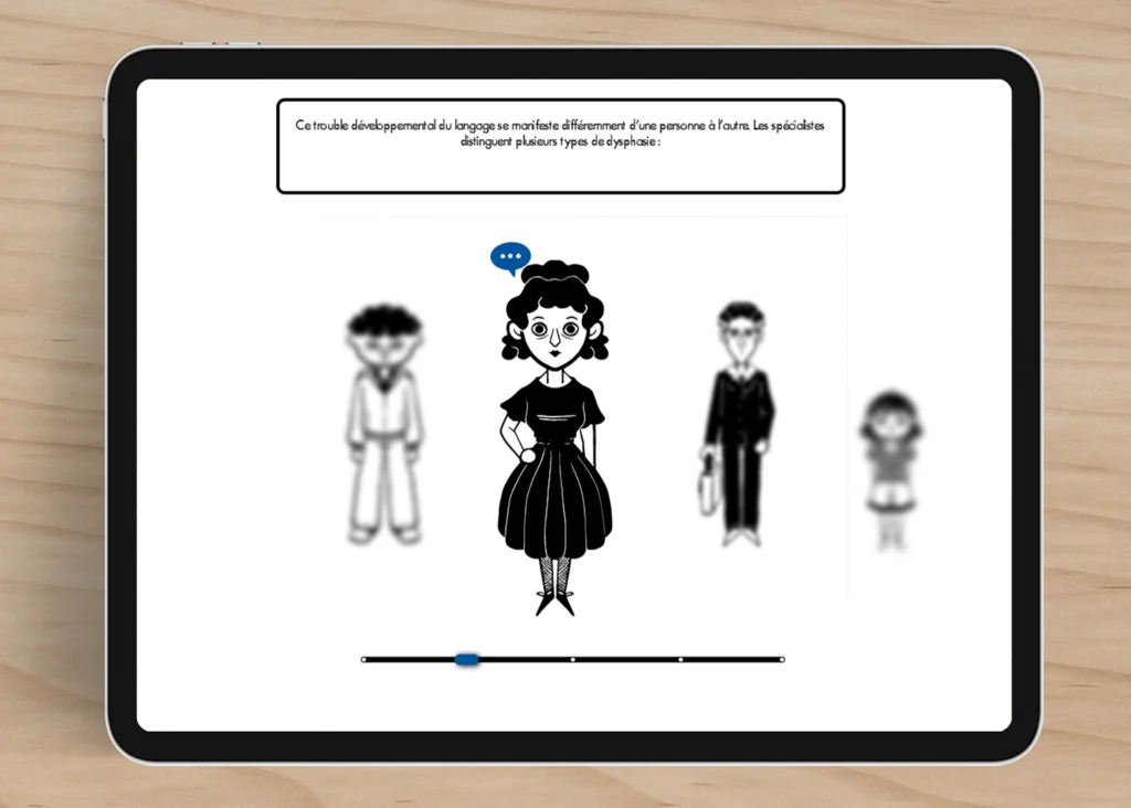 Découverte de ce que c’est que la dysphasie d’une façon ludique. Une suite de la BD Qu’est-ce la dysphasie ? pour aborder plus largement le sujet et toucher un plus grand nombre de personne.