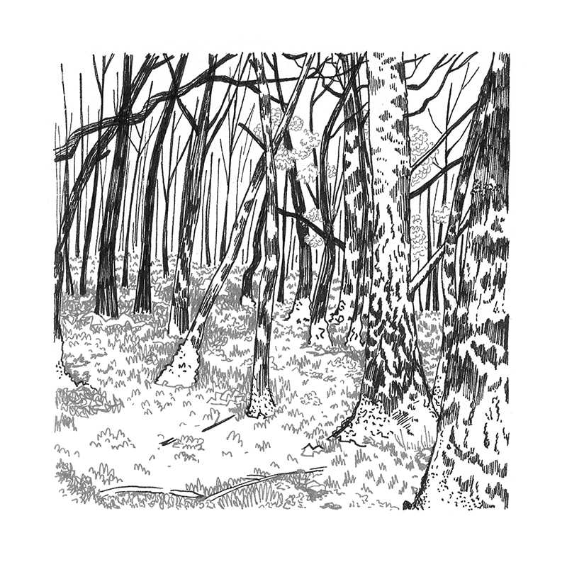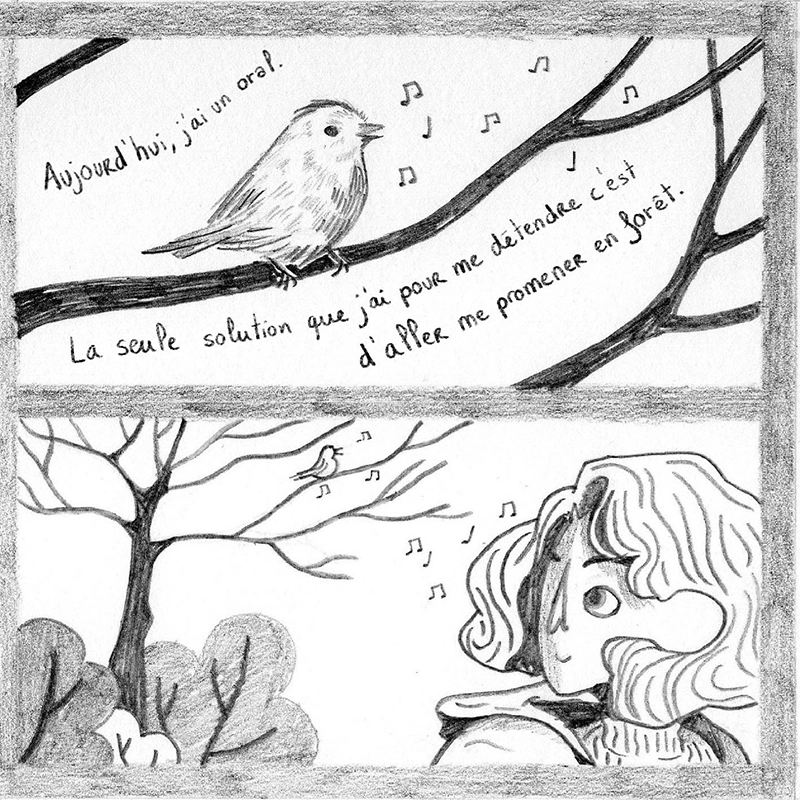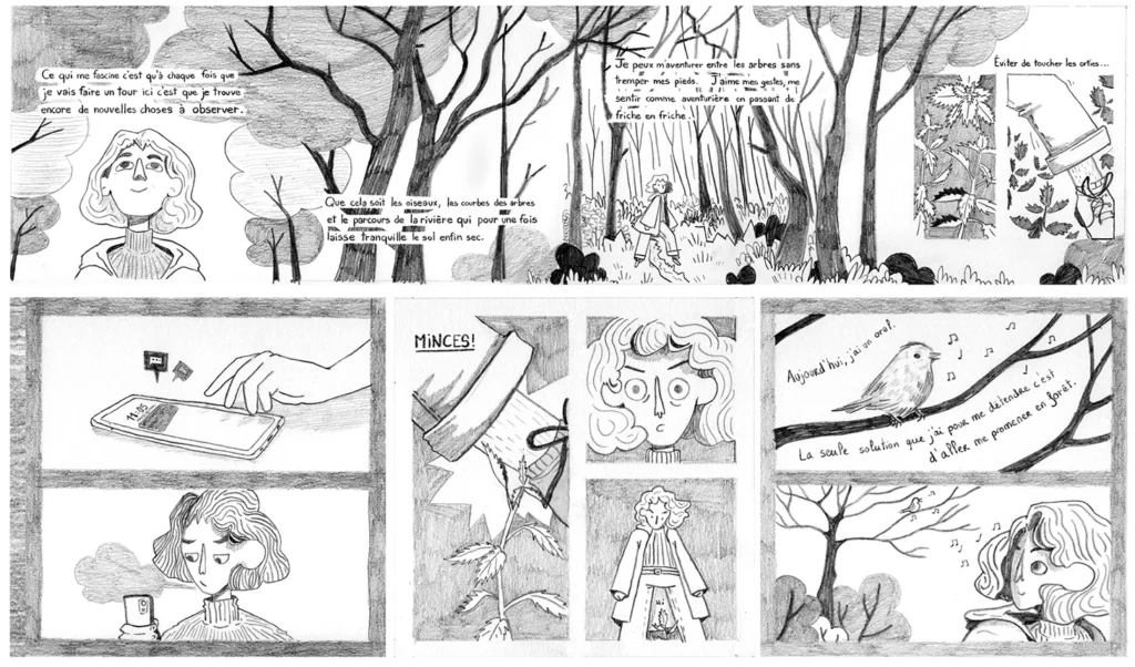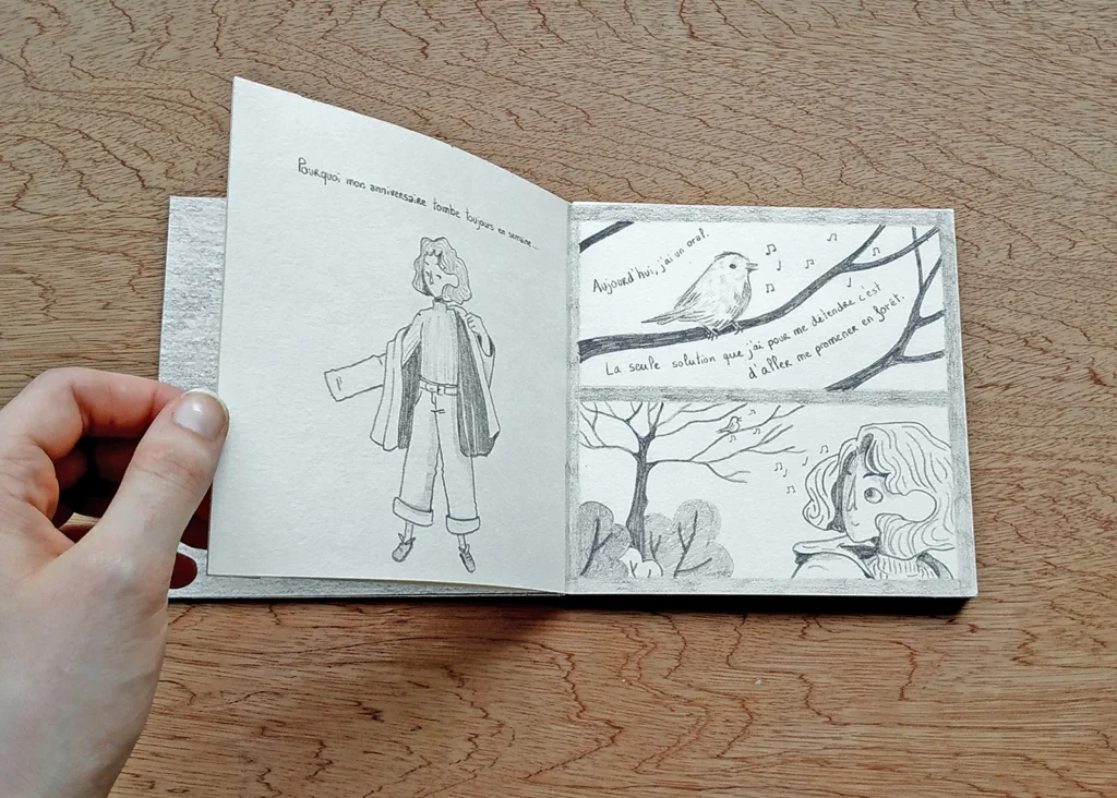 Ces petits livres font partie d’une petite édition intime sur le thème de la forêt qui entoure ma maison d’enfance. Un exercice sur la narration et la composition.