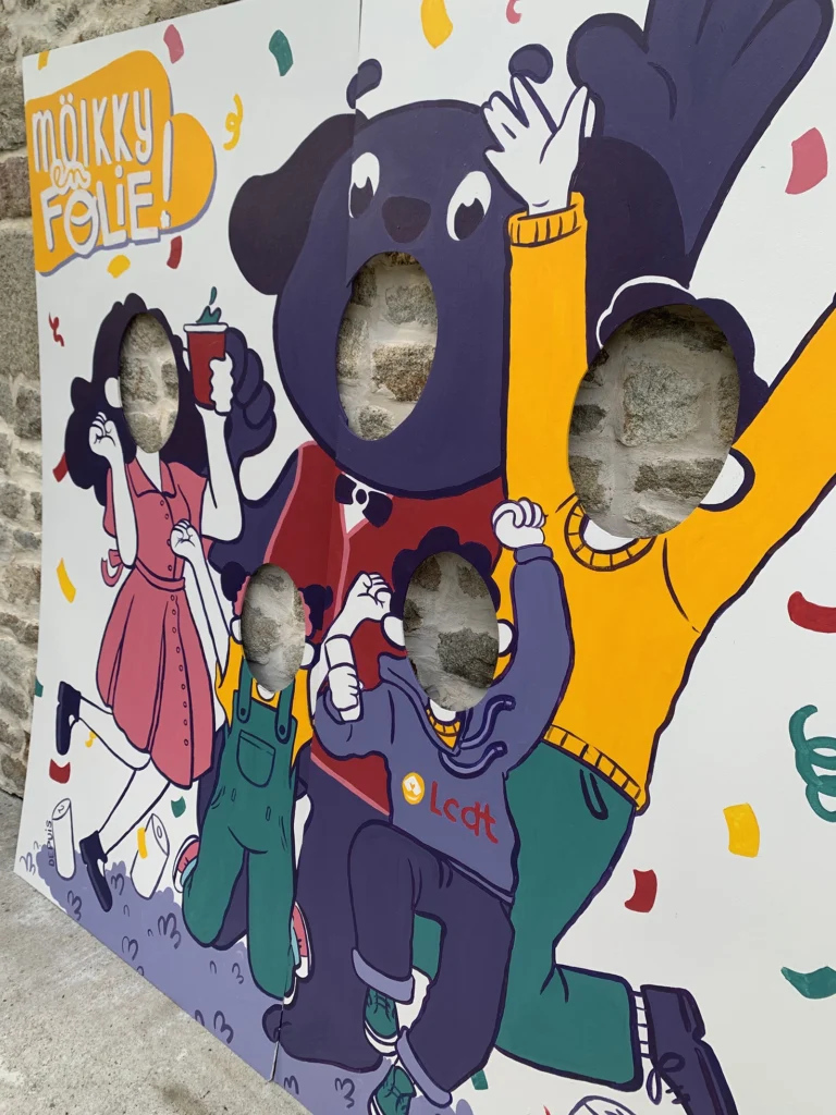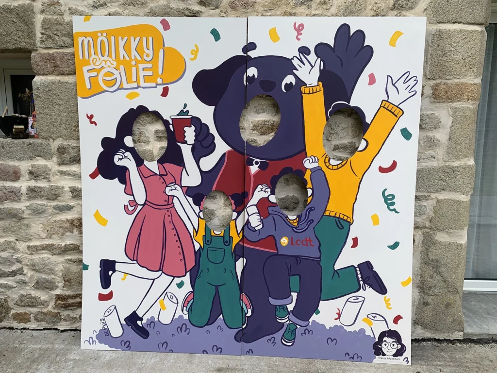 Réalisation et peinture d’une illustration pour un passe-tête pour l’association Les Chiens de Talus pour leur évènement Molkky en Folie.